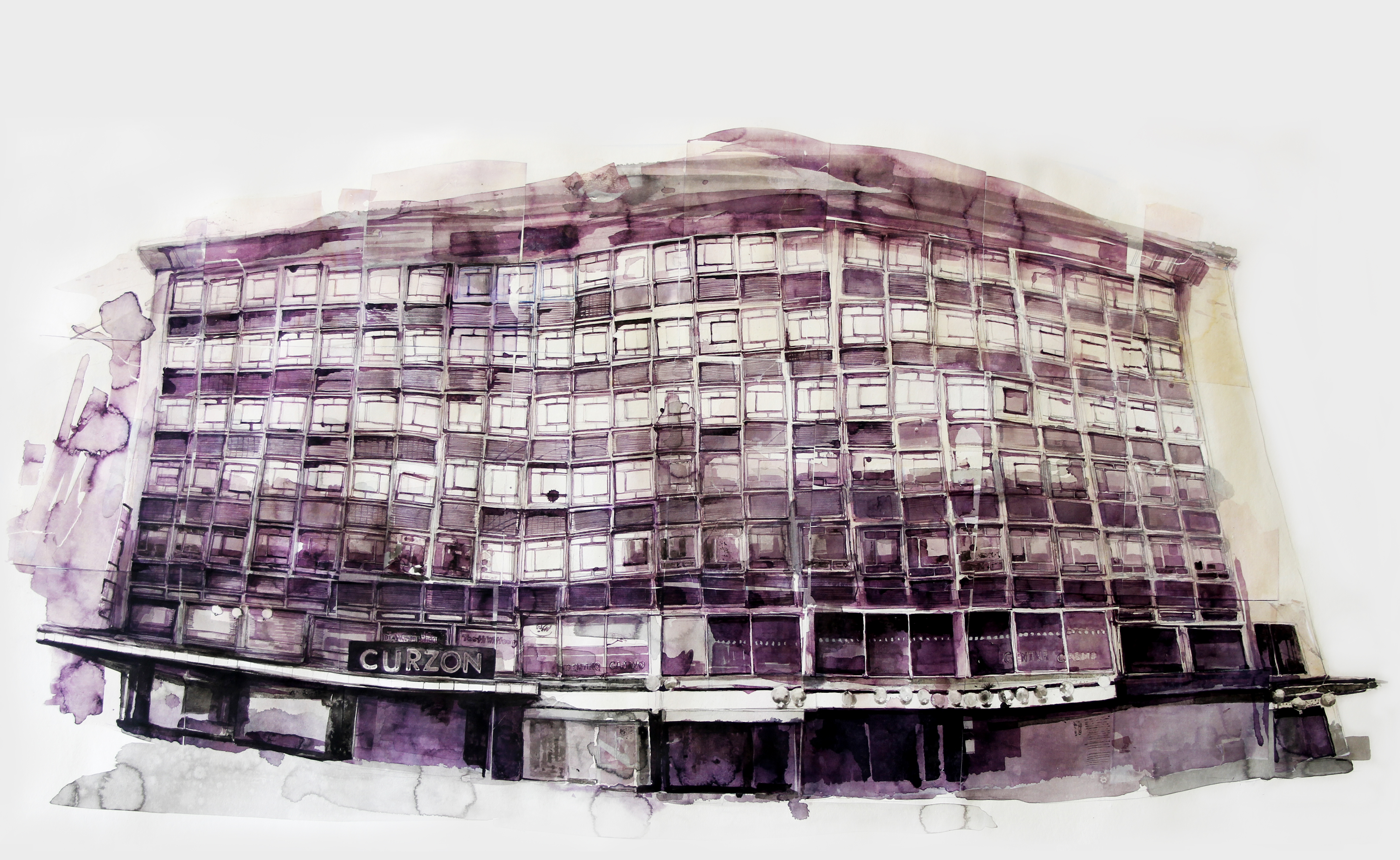Curzon Soho by Jemima Carter-Lewis, Indian ink on paper with laser transfer monoprint